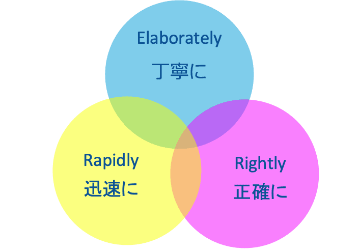 | 丁寧 | お客様のご要望に迅速かつ丁寧にお応えし、想像以上の満足をお届けする。 |